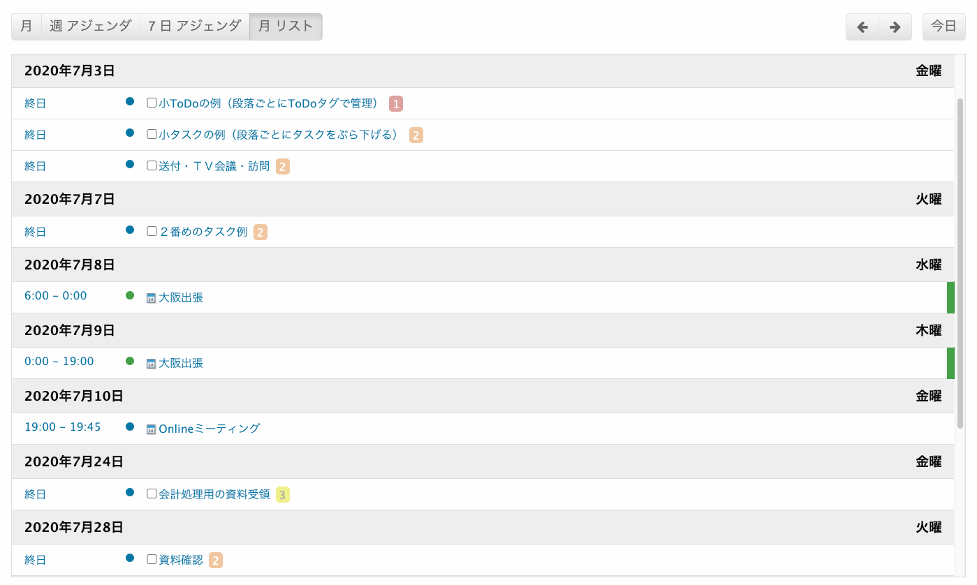 タスク(ToDo)を並べて表示するタスクリスト。完了したタスク(Done)の表示も可能です。