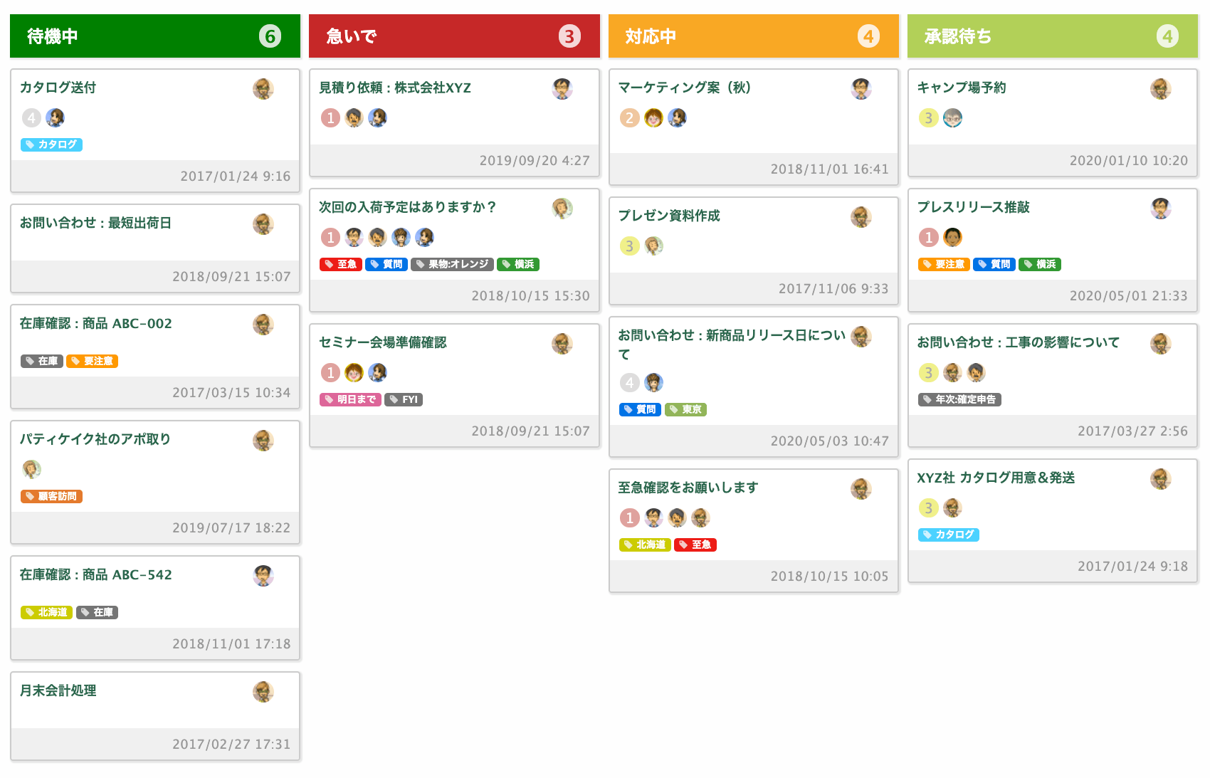 並び替え、優先度や担当者での絞り込み、コメント追加など、仕事を効率よく進めるための機能が揃っています。